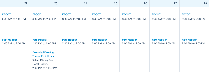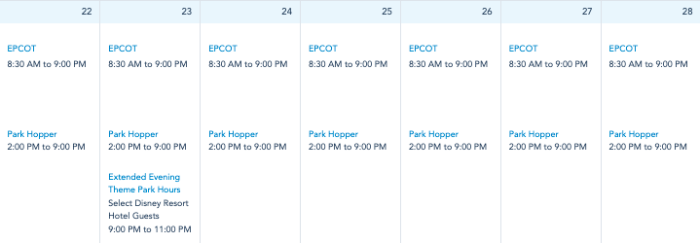 EPCOT will be open from 8:30AM until 9PM every day next week with Extended Evening Hours until 11PM in May 23rd!