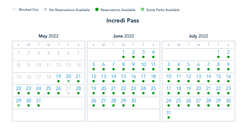 Incredi Pass holders can make a reservation at any of the parks every day next week except for May 27th, which is sold out!
