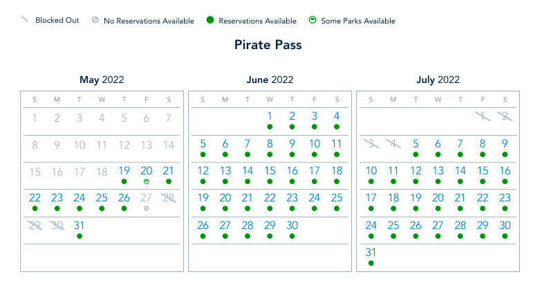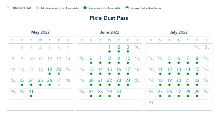 Pixie Dust Pass holders are blocked out on May 22nd and 28th, and the 27th is sold out, but everything else is open!