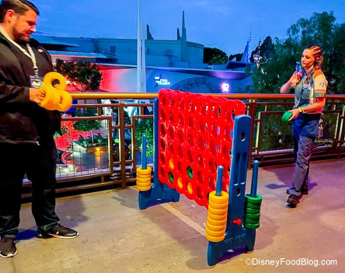 The area is private and it’s perfect for getting away from the hustle and bustle of the park without having to actually leave the park. You’ll also find some giant games, including Checkers, Jenga, and even Connect 4. This is a great option to keep kids busy if you just want to chill here until the fireworks.