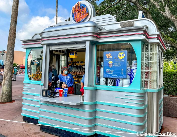 If you’re looking for a popcorn bucket, we saw the Skyliner Bucket available at carts!