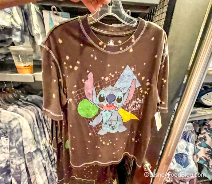 How adorable is this Bleach-dyed Stitch shirt?! It features the phrase “out of this word” and is $36.99.