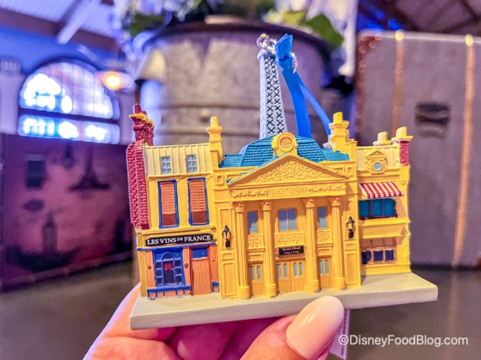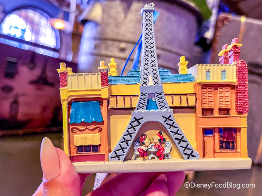 In more Disney ornament news, a France Pavilion ornament is now available at EPCOT! It features a familiar facade…