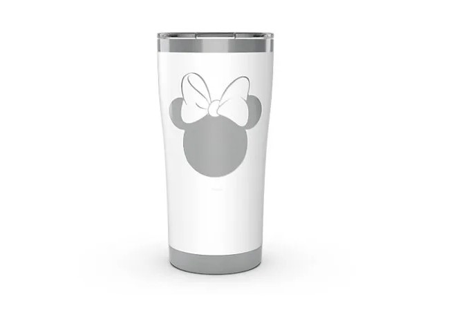 And who would Mickey be without his partner — Minnie? Of course, there’s also the Minnie Silhouette Engraved on Glacier White. The 20-ounce size is $32.99 and the 30-ounce size is $42.99.