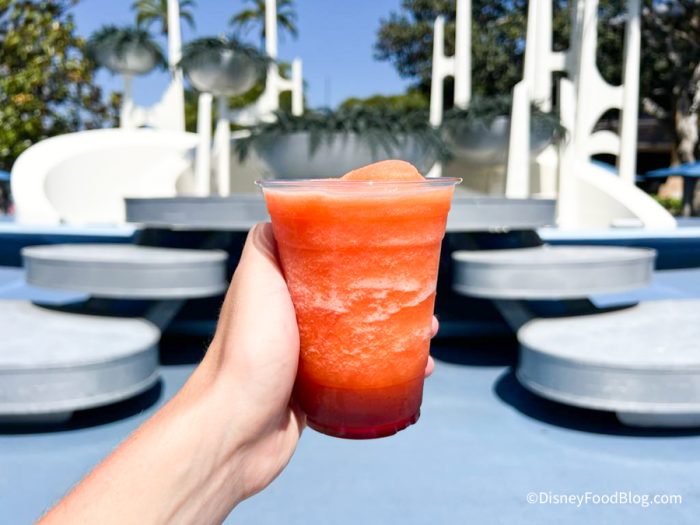 Over at Galactic Grill in Disneyland Park, you can now find a POG SLUSH (!!). No, we’re NOT kidding around! You’ll find it on the menu as Passion Fruit, Orange, and Guava Slush and it’s exactly what it sounds like (PLUS, it comes with a glow cube!).