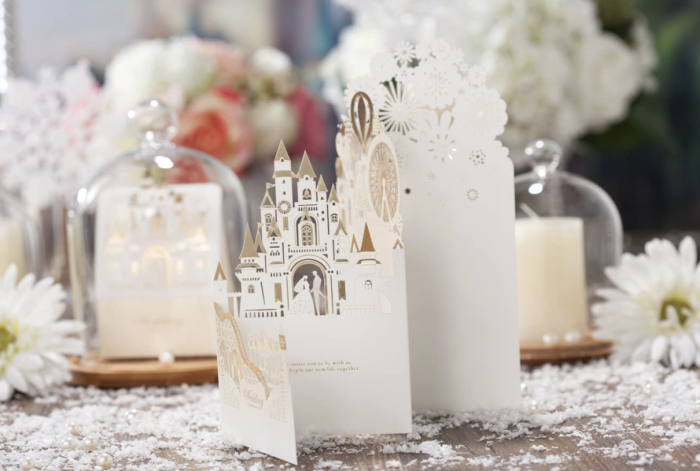 Of course, there are a TON of ways that you can incorporate Disney into your decor. But, before the ceremony even begins, you can always add some Disney to your wedding invitations or programs! We love these intricate castle ones.