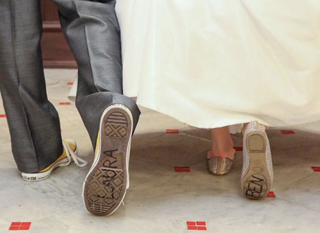 Another super cute idea we’ve seen is for both members of the couple to write the other’s name on the bottom of their shoe like “Andy” is written on Woody’s boot in Toy Story! It’s such a sweet little surprise.
