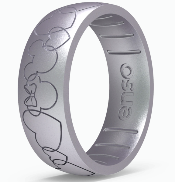 Or, if you want something less fancy, you can get a Disney-themed Enso silicone ring, like this Love All Around band in icy silver.