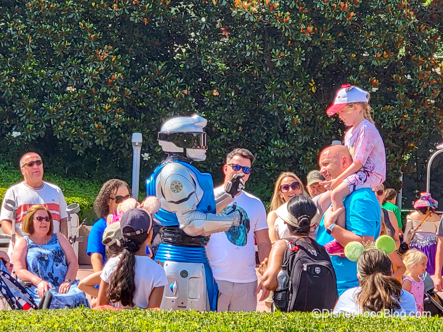 You can catch him interacting and speaking with guests in EPCOT’s World Discovery neighborhood, though there isn’t a set schedule for the bot at the moment. But we will let you know if we continue to see the bot strolling around the park!