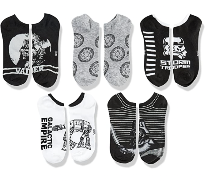 Next up on the list are these Star Wars Men’s No-Show Socks. The socks show off everything from Darth Vader to Storm Troopers to AT-ATs!