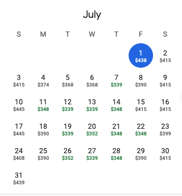 That’s significantly more expensive than the costs we saw for May, but very close (within just a few dollars) of the flight costs for June.
