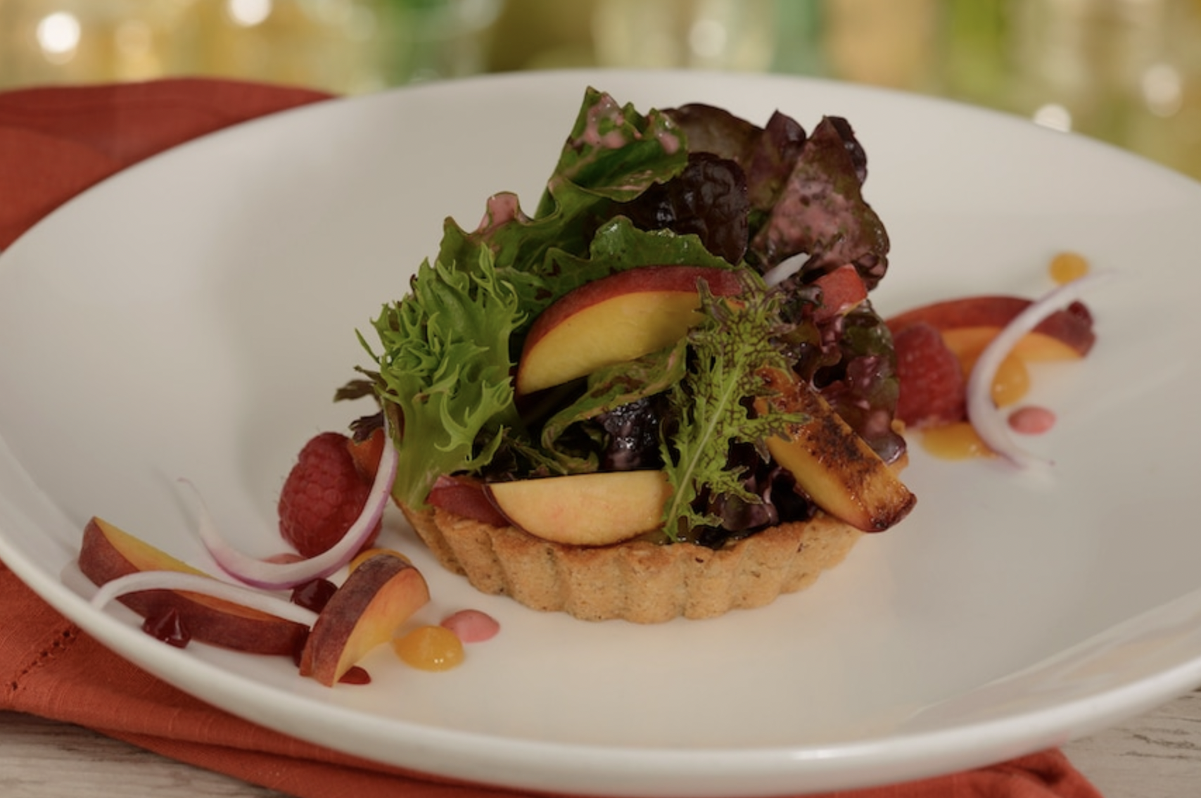 - ADDED: Florida Peach and Raspberry Salad — Grilled and Fresh Peaches, Raspberry Variations, Steel-cut Oat Granola Tart, Red Onion, Whipped Raspberry Vinaigrette