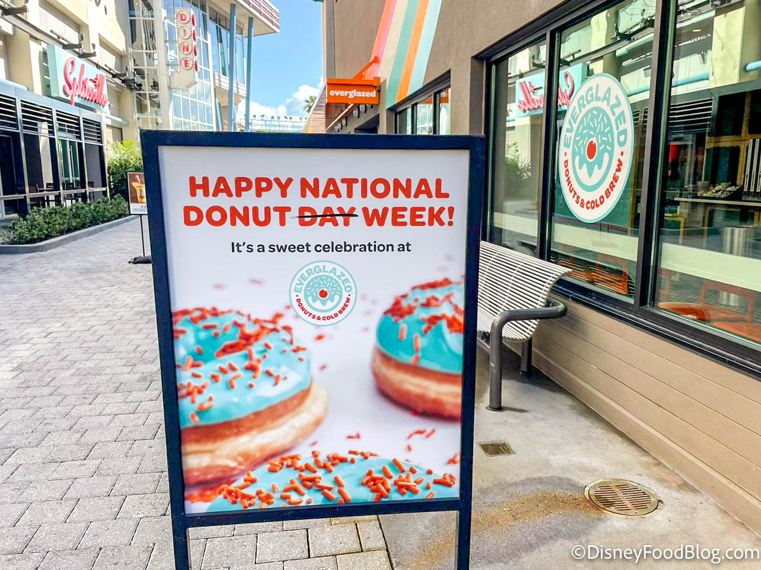 Disclosure: In nearly all circumstances, Disney Food Blog writers and photographers pay full price for their own travel, hotel, food, beverage, and event tickets. We do this because it’s important to us as journalists to ensure not only that we give you unbiased opinions, but also that you can trust us to do so since we’re paying our own way. On rare occasions, when we are invited by a company to attend a preview as media, and when we choose to accept that invitation, we will always make you, our readers, aware of that situation. Recently, we were invited by Everglazed Donuts & Cold Brew to attend their media preview of Donut Week. Note that when we attend events as media we are 1) Not required to review that event/food on any of our channels, and 2) Not required to review that event/food favorably. You can always count on DFB to give you a 100% unbiased and honest review of any event that we attend, food that we eat, or beverage that we drink. You can see more in our Disclosure Policy. Thank you for reading. — AJ