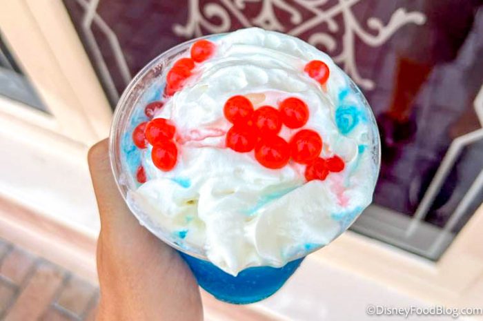 In Disneyland Park, you can try the Rocket Soda from Refreshment Corner for $5.99. It’s made with blue raspberry syrup, Sprite, whipped cream, and cherry flavor-filled boba.