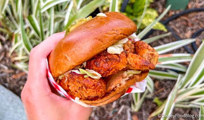 And finally, we tried the Big O’ Sandwich from Bred’s Nashville Hot Chicken food truck, which is available after 3PM from June 1st through July 4th for $15.95. This chicken sandwich comes with vinaigrette slaw, housemade pickles, and comeback sauce on a toasted brioche bun.