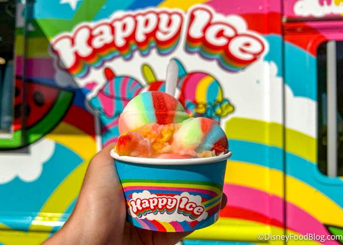 Next, we headed to the food trucks in Downtown Disney for more Celebrate Soulfully things to try! The Rainbow Rocket from the Happy Ice food truck is $7, and it’s available from June 1st through July 4th daily after 3PM. It’s basically a combination of all their Ultra-Premium Philadelphia Italian Ice flavors, including Cherry Bomb, Blueberry Blast Mango Madness, Strawberry Lemon, Pineapple Potion, Sour Apple Lush, Watermelon Lush, and Lucky Lemon.