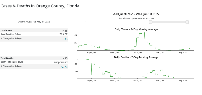 On the CDC website, you can take a look at the daily number of COVID-19 cases and deaths. As of late, case numbers have been increasing in Orange County, Florida.