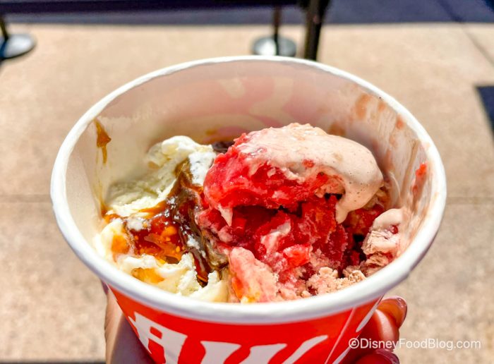 Known for their unique flavors and fresh take on ice cream using natural, organic ingredients — Salt & Straw has often impressed us but has sometimes left us very, very confused. The beginning of a new month means NEW flavors at Salt & Straw, and based on what we heard was coming in June, we were intrigued, to say the least. Fried chicken ice cream? And deviled egg ice cream?! Let’s check out the NEW June flavors at Salt & Straw in Disney Springs and see if any are worth getting!