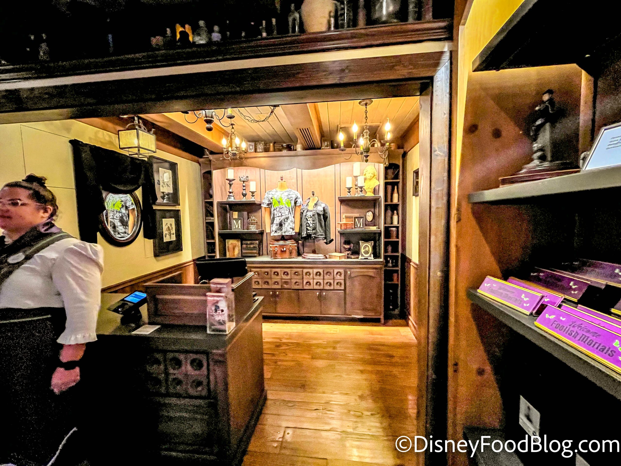And over at the Haunted Mansion gift shop, Memento Mori, the construction we’d been watching for a few weeks has been completed. At this time, all the walls are down in the shop.