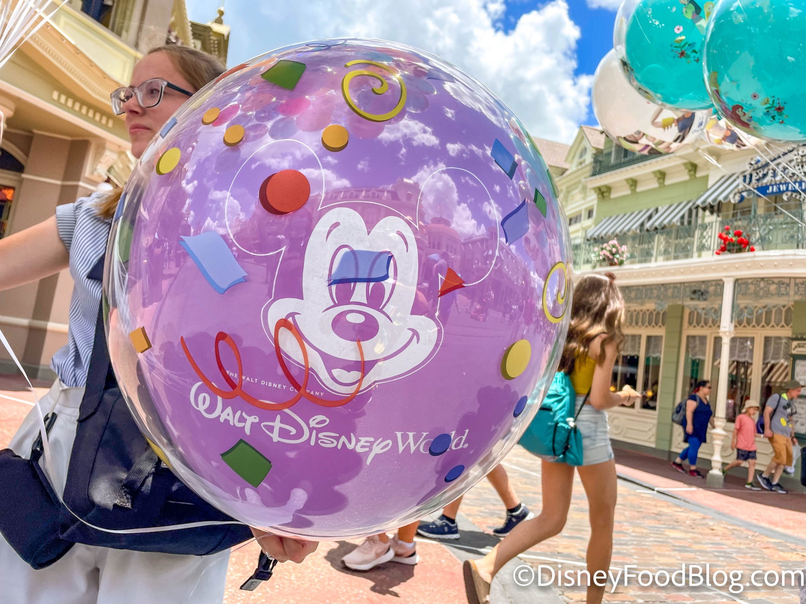 And last but not least, we’ve got a brand-new balloon on Main Street, U.S.A.! This Mickey Mouse design has an iridescent glow to it and confetti printed on the outside. You can grab one for $15.