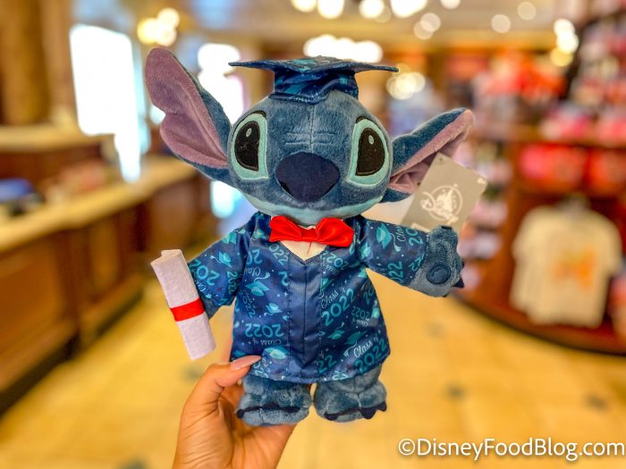 Okay, now it’s time to take a deep dive into the merchandise that we spotted in the past few days. There were a LOT of new items in The Emporium, so buckle up! First of all, we spotted a new Graduation Stitch Plush for $24.99.