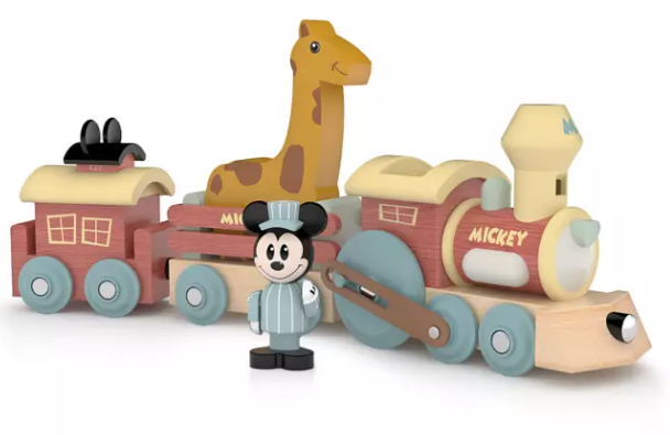 This adorable Mickey Mouse Wooden Train Set comes with a wooden Conductor Mickey, a giraffe, and real wheels that turn!