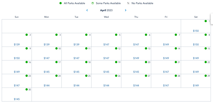 And, in March of 2023, Fridays through Sundays range from $149-$150, and weekdays range from $144-$149.