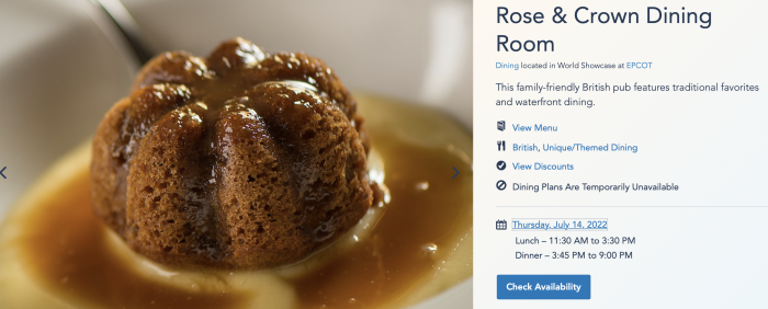 Something else to note is that it wasn’t listed as one of the restaurants available for Eat to the Beat Dining packages for the EPCOT Food & Wine Festival, which starts on July 14th — the first day reservations are unavailable at Rose & Crown. Again, Disney has not commented on what is going on with Rose & Crown in July, but we’ll let you know about any closures or refurbs!