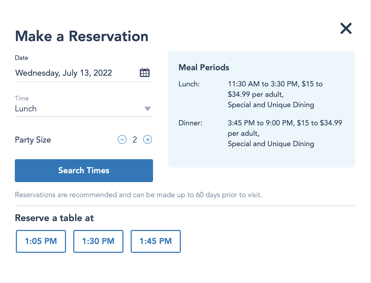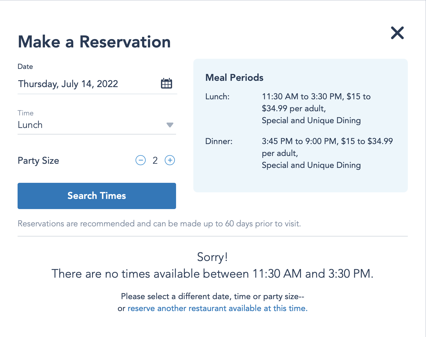 Thanks to our reader Callie for the heads up! So here’s what we’re seeing. We checked for available reservations at Rose & Crown for July 13th — there are plenty available until that date.