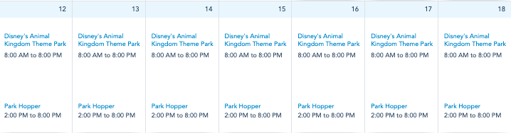 Disney’s Animal Kingdom will be open from 8:00AM until 8:00PM every day next week!