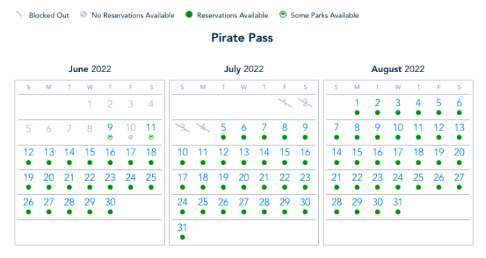 Pirate Pass Holders can make reservations at any of the four parks every day next week!