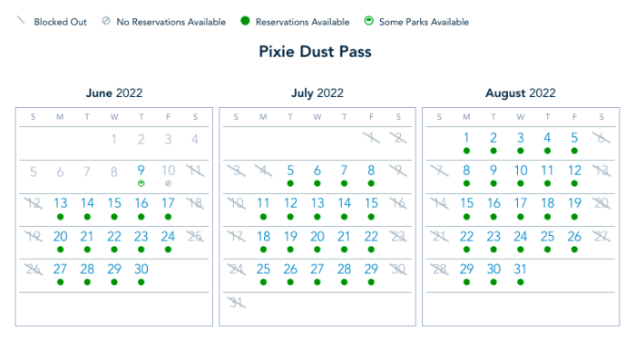 Pixie Dust Pass Holders are blocked out on weekends, but can make reservations at any of the four parks every weekday next week!