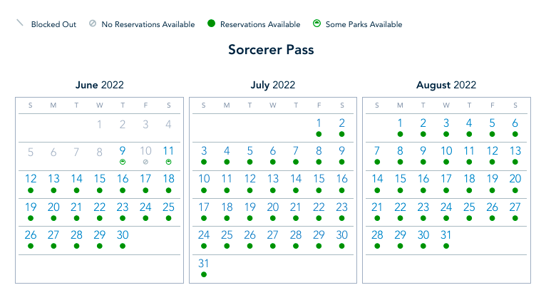 Sorcerer Pass Holders can make reservations at any of the four parks every day next week!