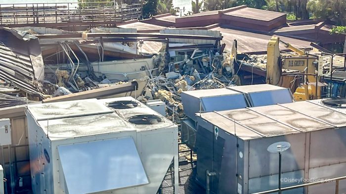 You can see areas where some spots have been demolished, and there are lots of crew members and equipment on the scene, getting things ready for the Polynesian’s next phase. As you can see in these photos, almost the entire Spirit of Aloha building has been demolished.