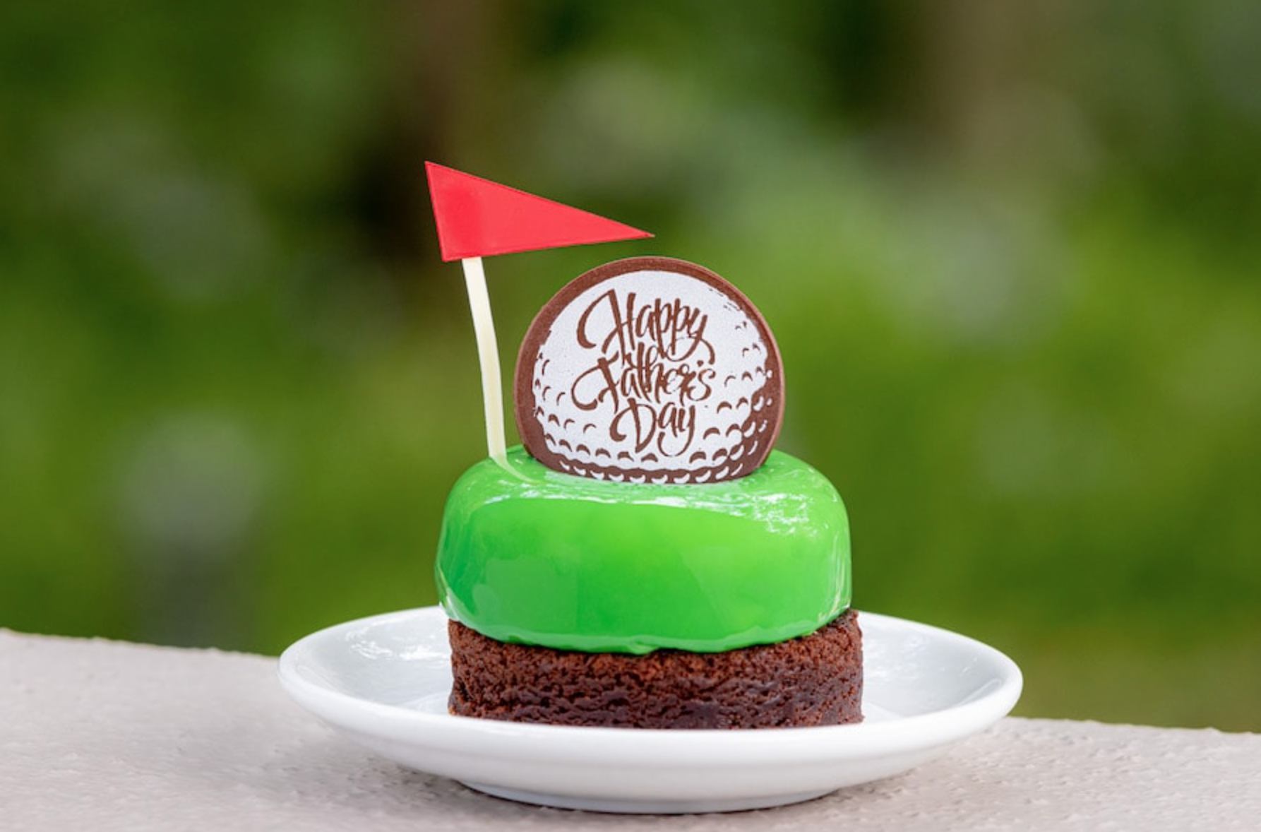- Hole in One: Fudgy brownie filled with caramel and pecans, topped with cheesecake glazed in a white chocolate glaçage with white chocolate golf garnish (New) (Available through June 19)