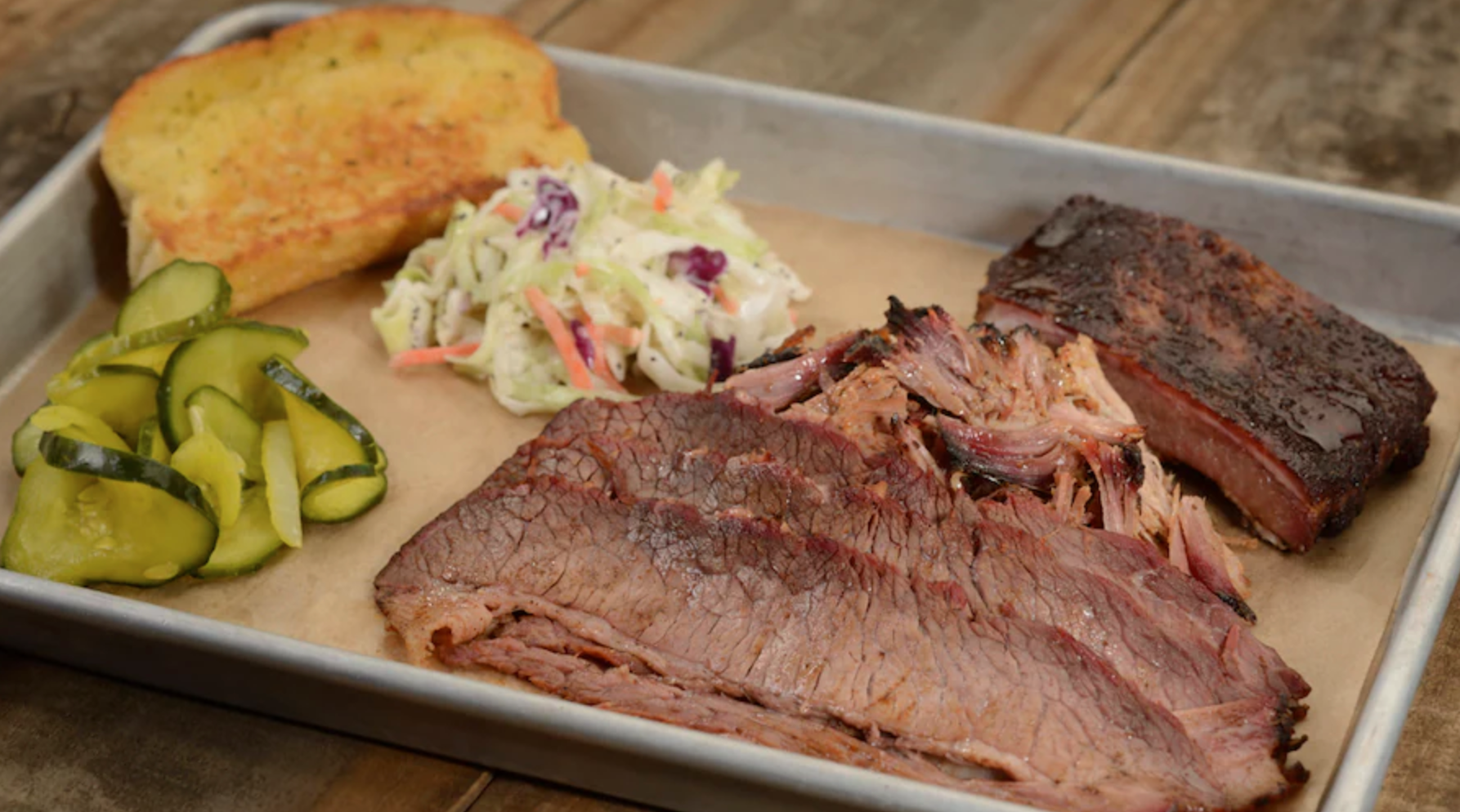 - All-American Dad Platter: Memphis dry-rub ribs, sliced Texas beef brisket, North Carolina chopped smoked pork butt, garlic toast, and choice of side (New) (Available June 19th)