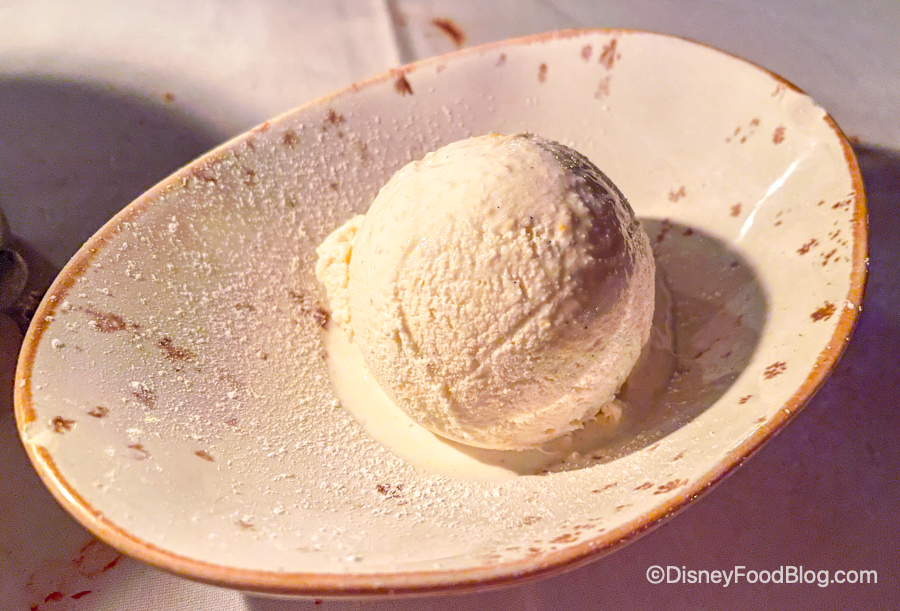 After we had our fill of all the Tacos de Ribeye we could eat, we decided to order the Sweet Corn Ice Cream. It’s $9 for one scoop, making it possibly the most expensive ice cream per scoop in Disney World — but it was pretty good!
