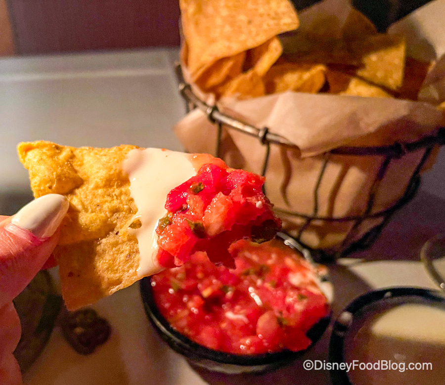 The queso was creamy, mild, and super cheesy, while the salsa tasted fresh. We do wish the queso had a kick to it, but overall it was delicious. The chips weren’t too salty like you often find in restaurants either!