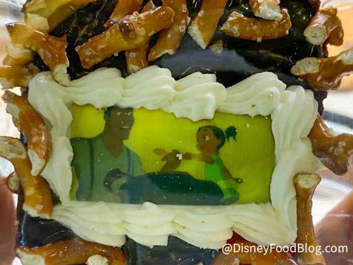 And over at the All-Stars Movie and Music Resorts, you can check out the Princess And The Frog Fatherly Moments Brownie also for $5.49! This brownie features an image of Tiana as a child with her father, James.