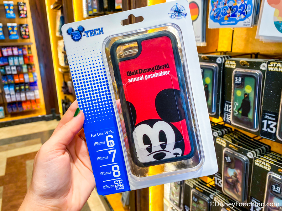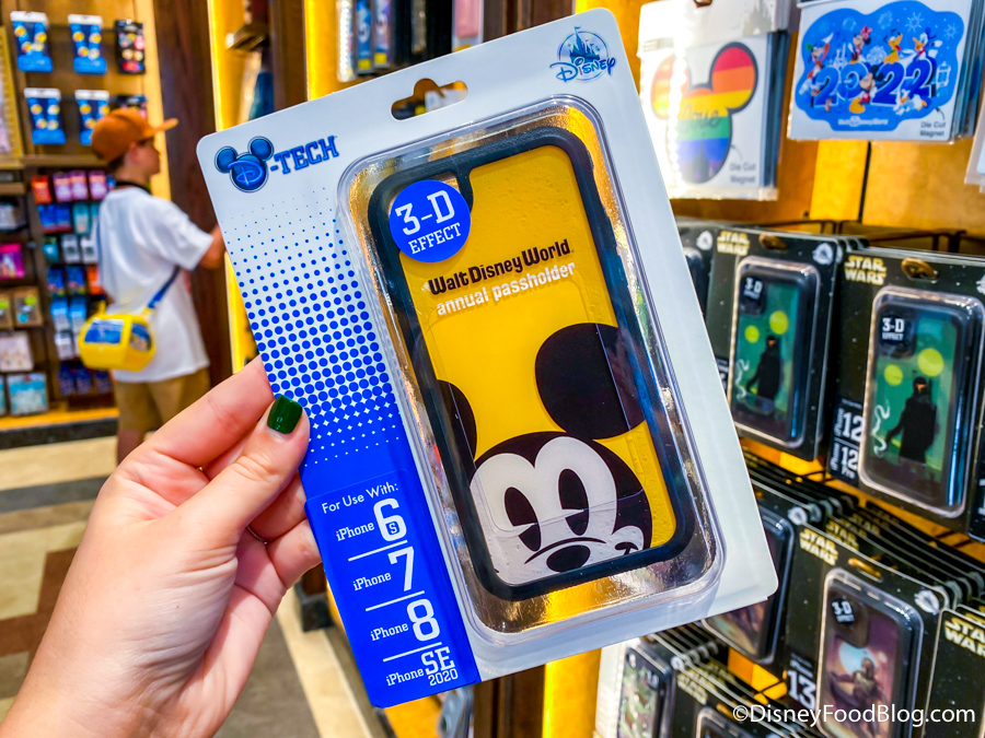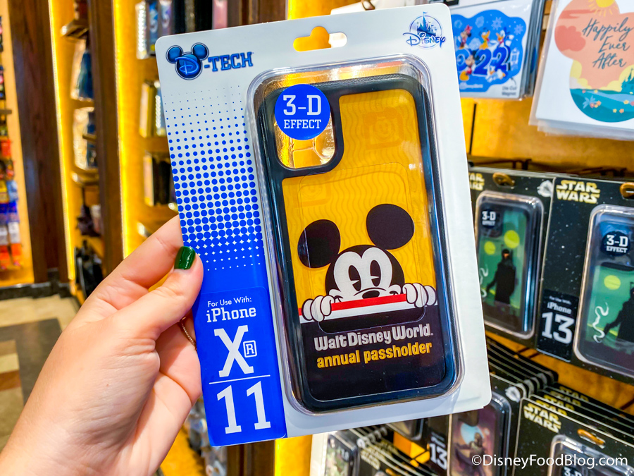 In The Darkroom, there are some new phone cases available. We have an Annual Passholder yellow one featuring Mickey Mouse…