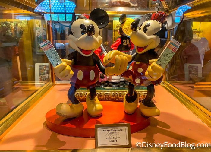 There’s also a Pie Eye Mickey and Minnie figurine for $160. If you take a closer look at their hands, you’ll notice that they’re holding retro park tickets!