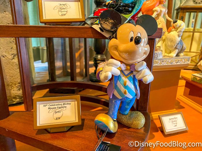 Bonjour Village Gifts in Fantasyland is home to some truly fancy souvenirs, and this week three new figures/statues arrived. The first is the Mickey 50th Anniversary design from Britto for $75.