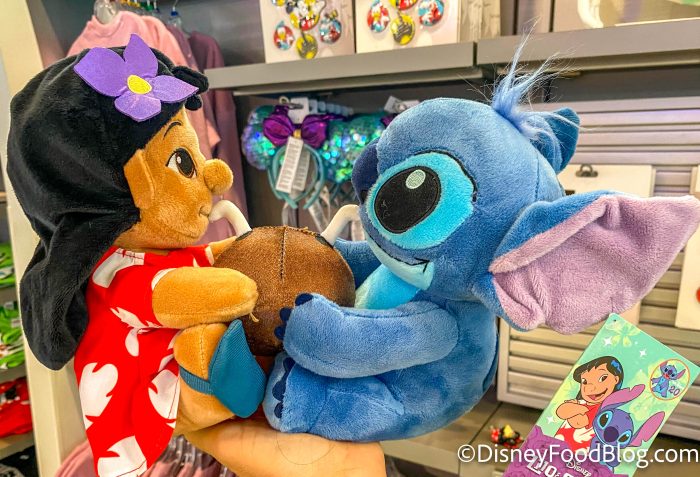 Over in Tomorrowland, we spotted this Lilo and Stitch plush for $39.99. Are they drinking out of a coconut?!