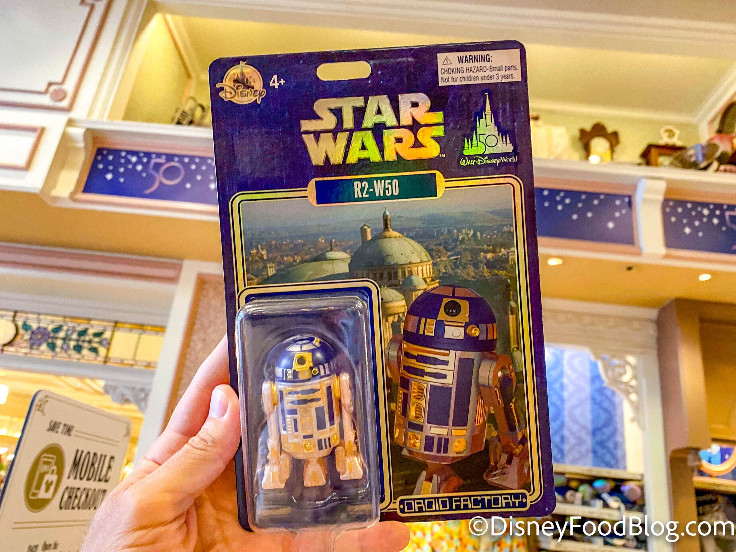 In other Star Wars merchandise news, Disney also released a 50th Anniversary R2-D2 figurine for $14.99. This EARidescent version is called R2-W50 — how clever is that name?!