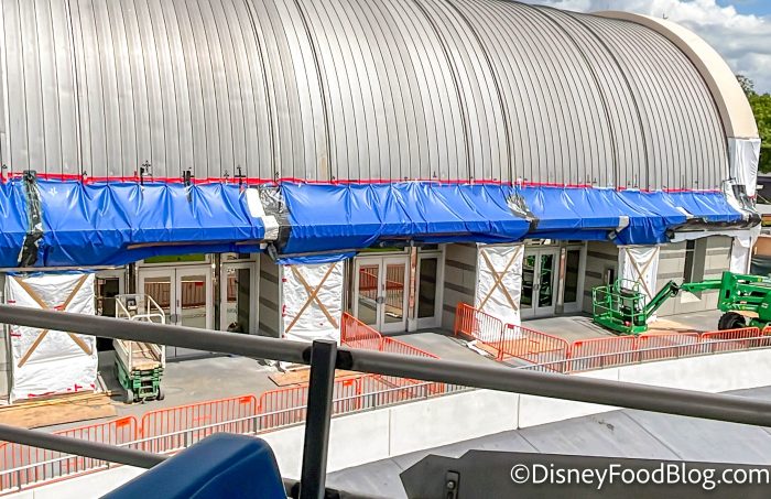 On the other side of the PeopleMover tracks, Tomorrowland Light & Power Co. is having some work done on the exterior of the building. It’s likely that this area will become the walkway that leads to TRON, so it seems that construction crews are prepping it to become a high-traffic area.