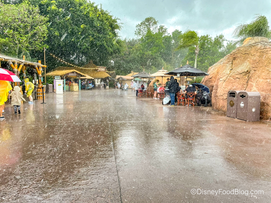 That is to say, if the weather is looking particularly dangerous or torrential, Disney may call an audible and decide to shut down certain booths for safety. But, Central Florida sees many, many, summertime showers that often don’t last for very long — so you should still be able to get your grub even in the rain (though you might get wet while waiting in line!).