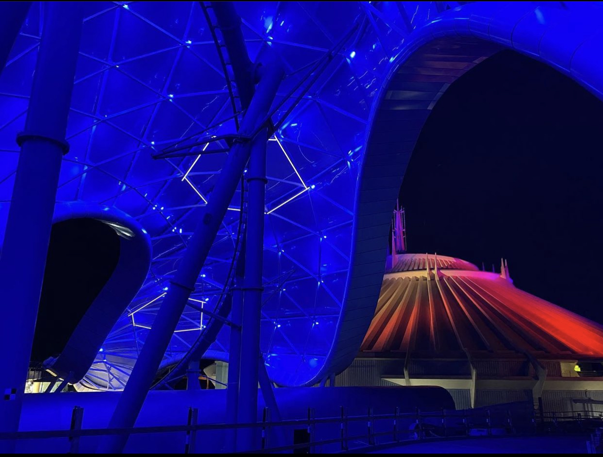 On Instagram, Walt Disney Imagineering posted some looks at TRON Lightcycle Run with nighttime lighting! This means they’ve hit a “project milestone” as the Show Lighting team has begun testing lighting on the canopy of the ride.