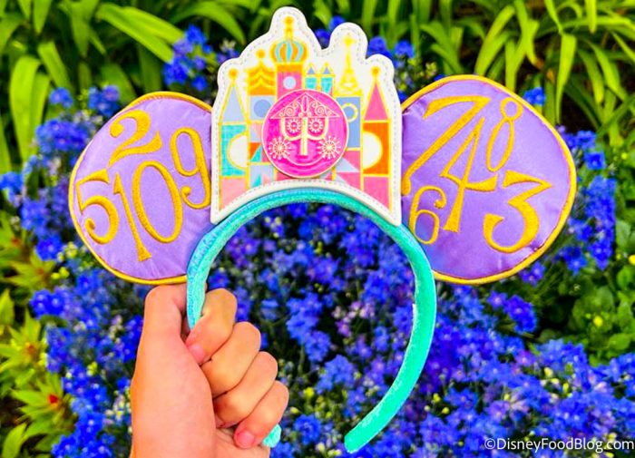 Here’s what the Mickey Ears look like! They have the iconic “it’s a small world” show building on the front, and the numbers from the clock on the ears.