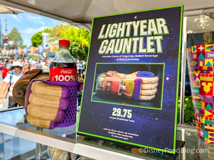 If you’re in Tomorrowland in Disneyland, then you can snag this new Buzz Lightyear Gauntlet from the popcorn stand! It comes with a bottled Coca-Cola drink of your choice, and Buzz’s hand will keep it safe for you as you make your journey through Disneyland.
