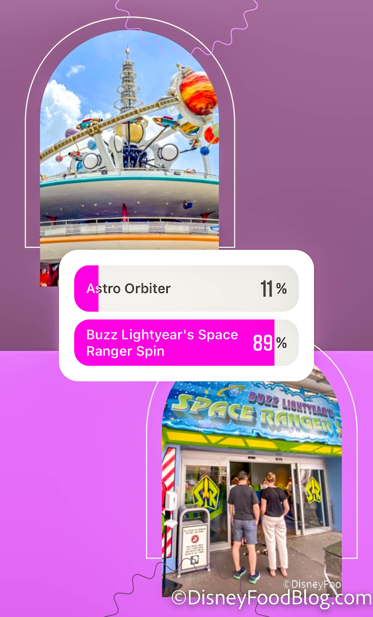 Another Tomorrowland battle was up next, and this was an easy win for our favorite Space Ranger! Buzz Lightyear’s Space Ranger Spin completely DEMOLISHED Astro Orbiter with 89% of the votes.